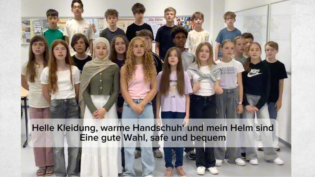 Im Mittelpunkt stand die Frage, warum manche Jugendliche den Helm aus Eitelkeit nicht tragen. Die Schülerinnen und Schüler nahmen diese Hemmungen offen aufs Korn – und lieferten mit ihrem Song eine klare, musikalisch wie textlich überzeugende Antwort: Helmtragen ist wichtig und selbstverständlich.